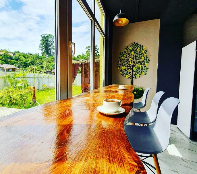 У мини-отеля Лимончелло удачное месторасположение. За городом, среди частных домиков. Доехать до центра города Сухум не сложно и не долго. 300м от отеля есть остановка транспорта. Автобус, маршрутки, троллейбус едет до центрального рынка через весь город. То есть есть можно доехать до центральной набережной. Это центр города. Ехать минут 10. До рынка ~ 25 мин. На набережной центральной очень красиво. Фонтаны, пальмы, рестораны, кафе. Театр есть замечательный.