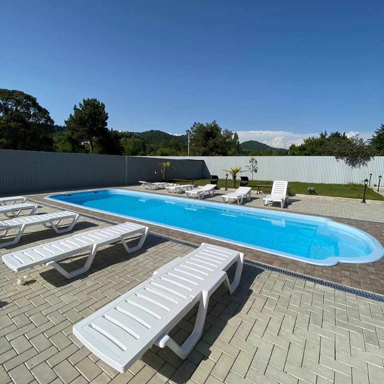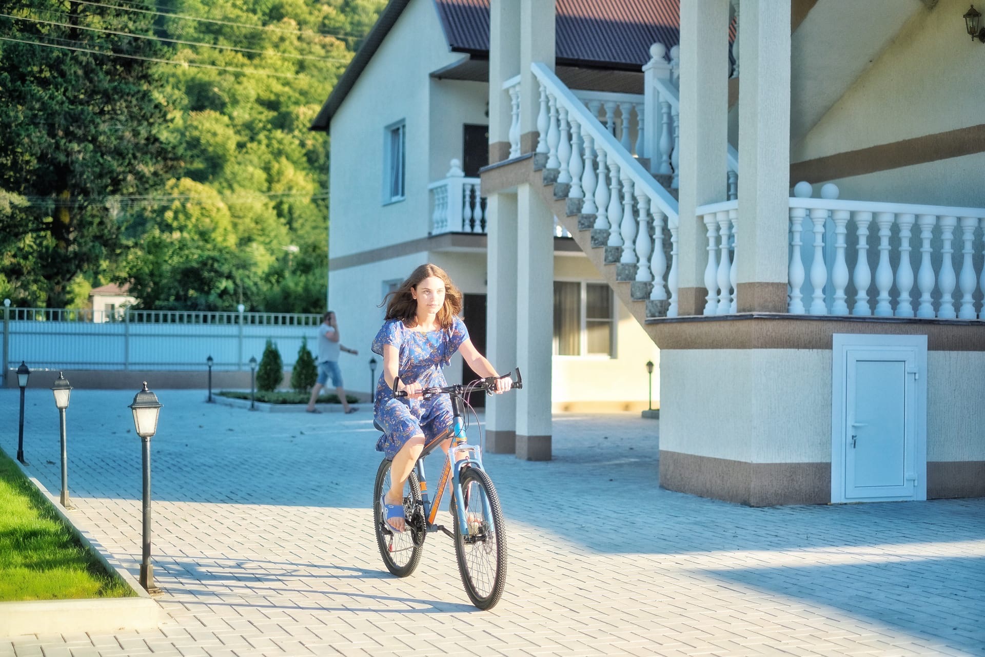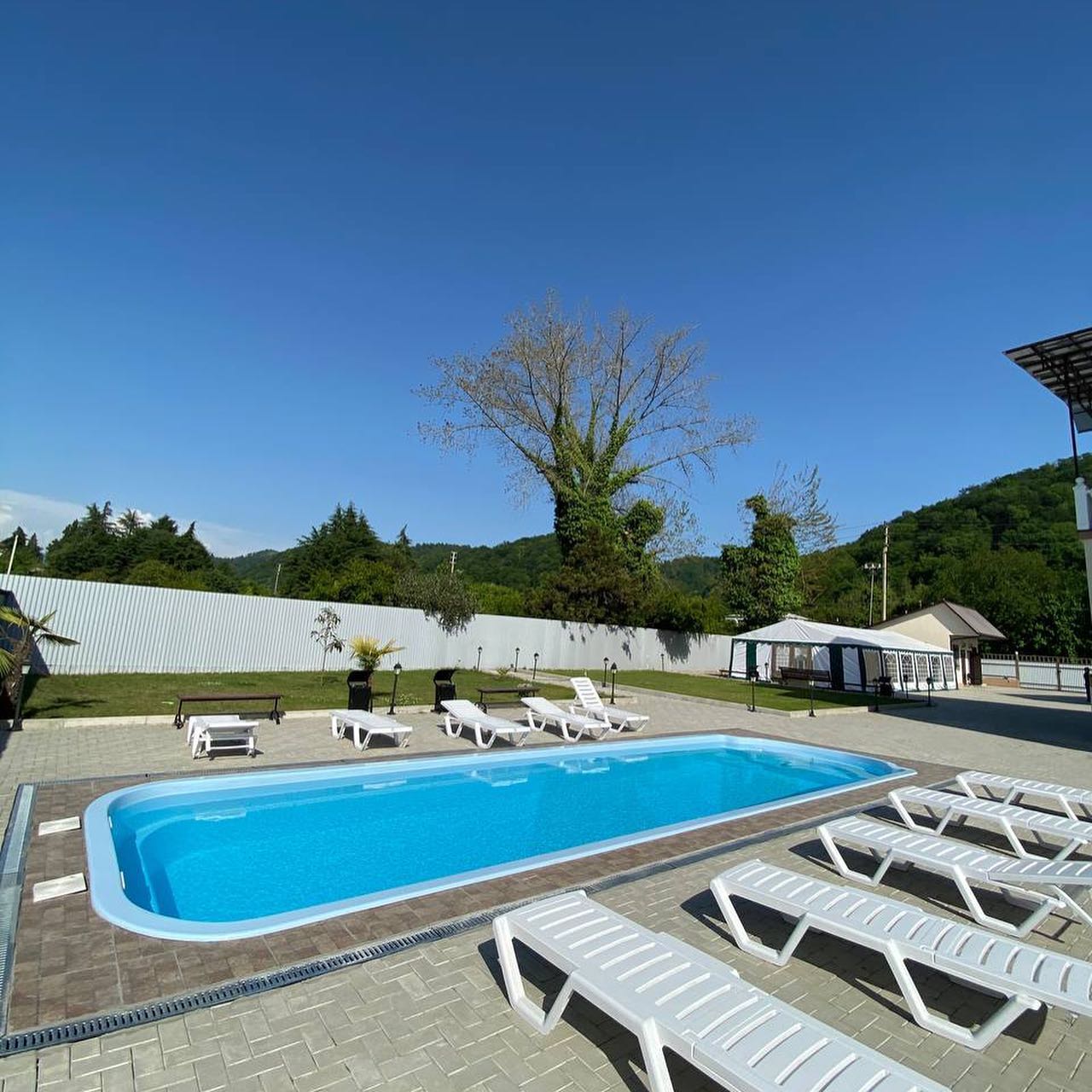 Имеется зона барбекю и мангальная зона, открытый бассейн, беседки на свежем воздухе, детская площадка, можно взять велосипеды напрокат.